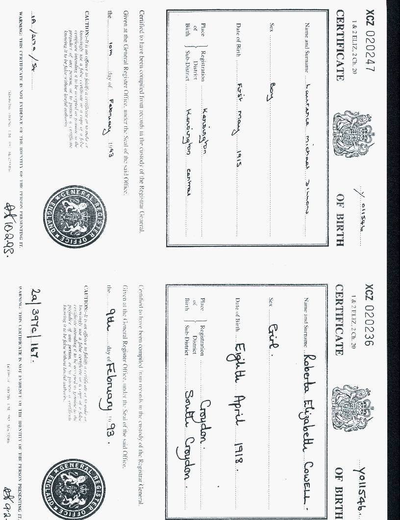 It should he noticed on the changed birth certificate that the changes to the forenames and sex took place many years after the births took place. Laura Maud Dillon was 29 years of age when the name and sex was changed to read Lawrence Michael Dillon sex boy. The person in question was what we now term a transsexual, as the existence of the transsexual was known by some doctors in 1944, but they had a different name at that time for this phenomena. They also had surgical knowledge, crude as it may have been. Robert Marshal Cowell was 33 years of age when the name and sex was changed to read Roberta Elizabeth Cowell sex girl, another transsexual person.
